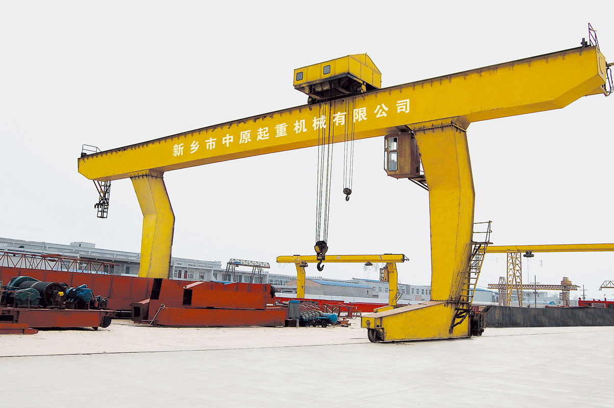 它的金屬結(jié)構(gòu)像門(mén)形框架,承載主梁下安裝兩條支腳,可以直接在地面的軌道上行走,主梁兩端可以具有外伸懸臂梁。